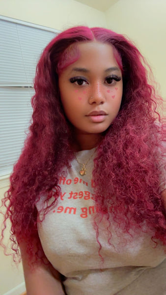 Add a pop of color to your look with our bold and beautiful Red Velvet wig! This red curly wig is sure to make you stand out in any room, drawing attention as soon as you step foot inside. Perfect for anyone looking to make a statement.